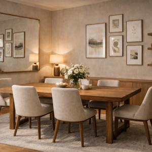 A sleek and durable dining table crafted from premium oak wood, perfect for family meals and modern interiors.
